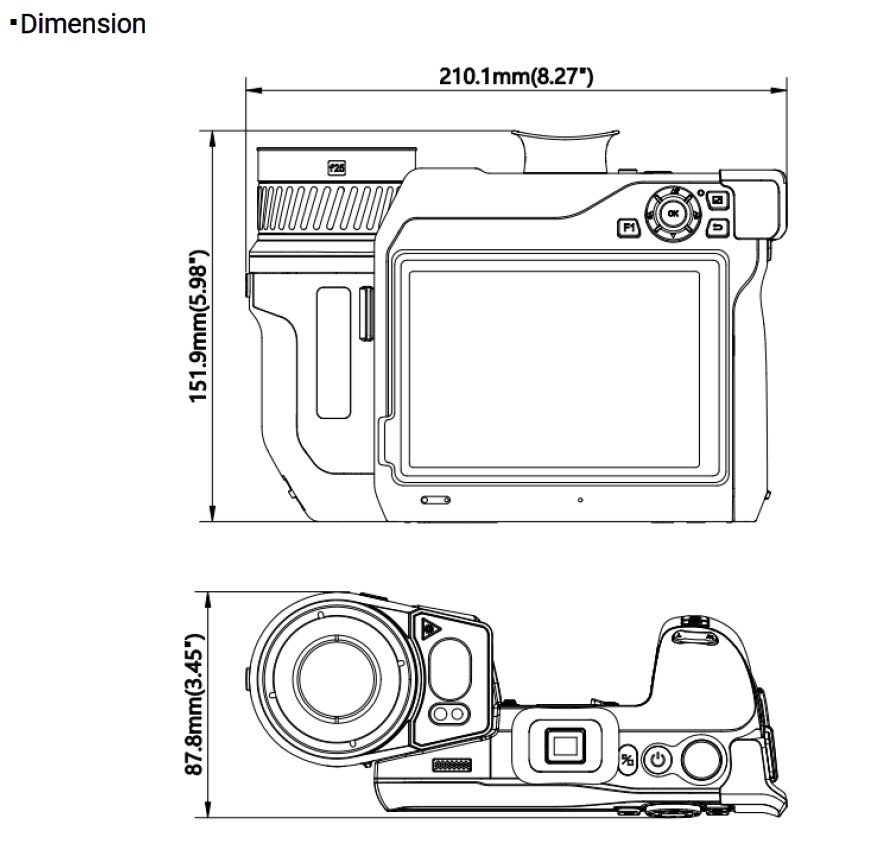 Ruční termografická kamera, rozsah měření teploty -20 až +650°C, rozlišení senzoru 640 x 480 Pixel, dva objektivy v balení, optika L25: 24.8° × 18.7°; L50: 50° × 37.3°, geometrické rozlišení (IFOV) L25: 0.66 mrad; L50: 1.35 mrad, displej 5", rozlišení displeje 1280x720 Pixel, digitální zoom 12x, dotykový displej, přesnost měření 2°C, minimální zaostřovací vzdálenost L25: 0.15 m; L50: 0.15 m, teplotní citlivost <30mK, rozhraní Wi-Fi/Bluetooth/USB-C/HDMI-D, výdrž baterie 4 hodin, nabíjení přes USB-C cca 2,5 hodiny, rozměry: 204.7 × 153.6 × 87.8 mm , hmotnost: 1481g.