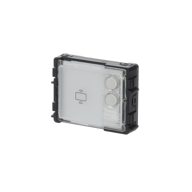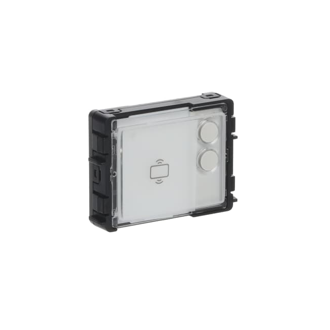 Propojuje se s hlasovým modulem, případně dalšími moduly v tlačítkovém table. Snímač IC karet na frekvenci 13,56 MHz. Rozměry (v × š × h): 72 × 97 × 25 mm Stupeň krytí: IP 54 Pracovní teploty: –40 až +55 °C *135 mm ... Modernizovaná platforma s menší vestavnou hloubkou funkčních modulů. Modul je kompatibilní s platformou 135 mm i s platformou 125 mm.