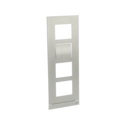 Kryt tlačítkového tabla pro modul hlasový/kamerový, velikost 1/4, ušlechtilá ocel. Pro umístění 4 funkčních modulů v 1 sloupci. Rozměry (v × š × h): 349 x 135 x 18 mm Stupeň krytí: IP 54 Pracovní teploty: –40 až +55 °C *135 mm ... Modernizovaná platforma s menší vestavnou hloubkou funkčních modulů.
