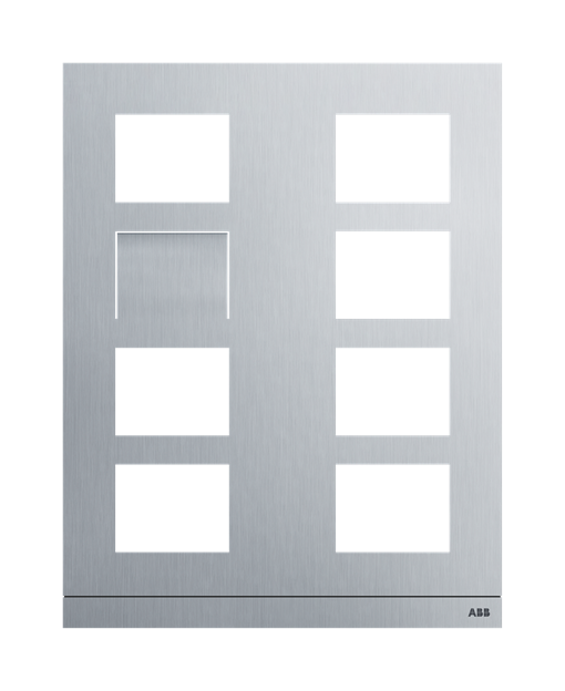 Kryt tlačítkového tabla pro modul hlasový/kamerový, velikost 2/4, eloxovaný hliník. Pro umístění 8 funkčních modulů ve 2 sloupcích. Kryt 2/4 se umísťuje do 2 zapuštěných instalačních krabic 41384F-H (velikost 1/4) spojené sadou 51381J.