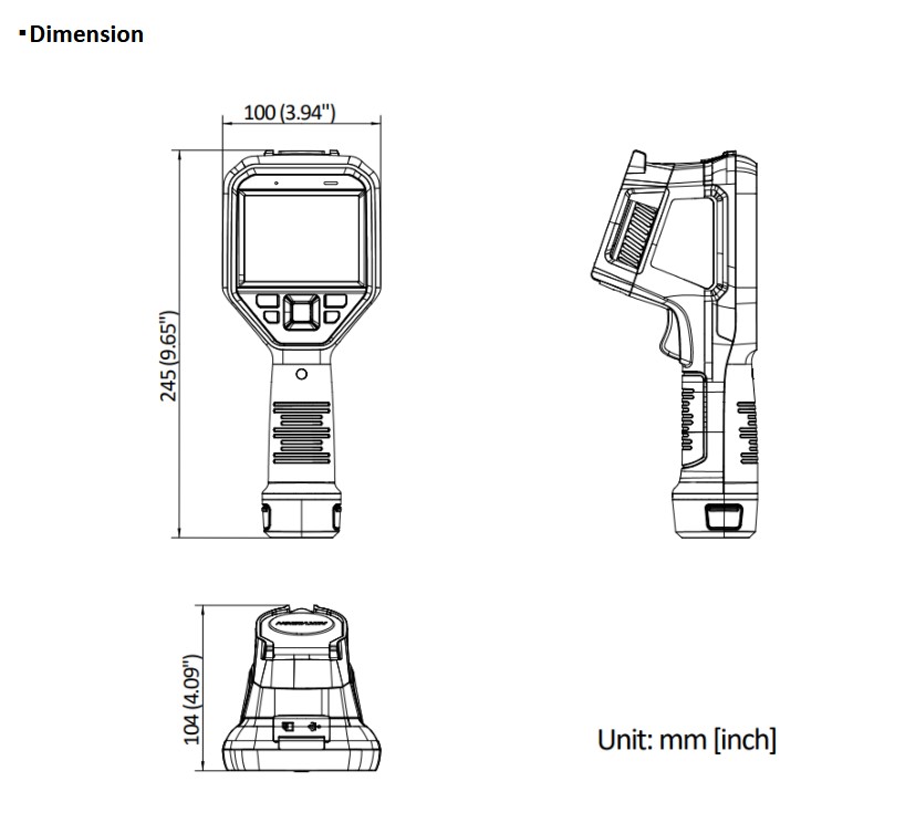 Ruční termografická kamera, rozsah měření teploty -20 až +550°C, rozlišení senzoru 192 x 144 Pixel, optika 18.8° x 14.1°, geometrické rozlišení (IFOV) 1.74mrad, displej 3.5", rozlišení displeje 640 x 480 Pixel, digitální zoom 8x, dotykový displej, přesnost měření 2°C, minimální zaostřovací vzdálenost 0,1m, teplotní citlivost 40mK, rozhraní Wi-Fi/Bluetooth/USB-C, výdrž baterie 6 hodin, nabíjení přes USB-C cca 4 hodiny, rozměry: 245 x 100 x 104 mm, hmotnost: 660g.