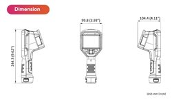 Ruční termografická kamera, rozsah měření teploty -20 až +550°C, rozlišení senzoru 256 x 192 Pixel, optika 50° x 37.2°, geometrické rozlišení (IFOV) 3.33mrad, displej 3.5", rozlišení displeje 640 x 480 Pixel, digitální zoom 8x, dotykový displej, přesnost měření 2°C, minimální zaostřovací vzdálenost 0,5m, teplotní citlivost 40mK, rozhraní Wi-Fi/Bluetooth/USB-C, výdrž baterie 6 hodin, nabíjení přes USB-C cca 4 hodiny, rozměry: 244 x 100 x 104 mm, hmotnost: 660g.