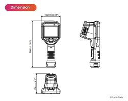 Ruční termografická kamera, rozsah měření teploty -20 až +550°C, rozlišení senzoru 256 x 192 Pixel, optika 25° x 18.8°, geometrické rozlišení (IFOV) 1.74mrad, displej 3.5", rozlišení displeje 640 x 480 Pixel, digitální zoom 8x, dotykový displej, přesnost měření 2°C, minimální zaostřovací vzdálenost 0,1m, teplotní citlivost 40mK, rozhraní Wi-Fi/Bluetooth/USB-C, výdrž baterie 6 hodin, nabíjení přes USB-C cca 4 hodiny, rozměry: 244 x 100 x 104 mm, hmotnost: 660g.