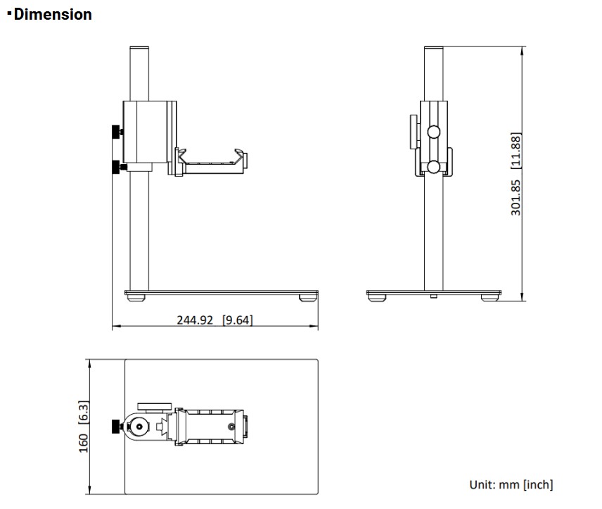 Stolní držák pro termokamery série Pocket, rozměry: 301,85 mm × 244,92 mm × 160 mm, hmotnost: 1,32 g