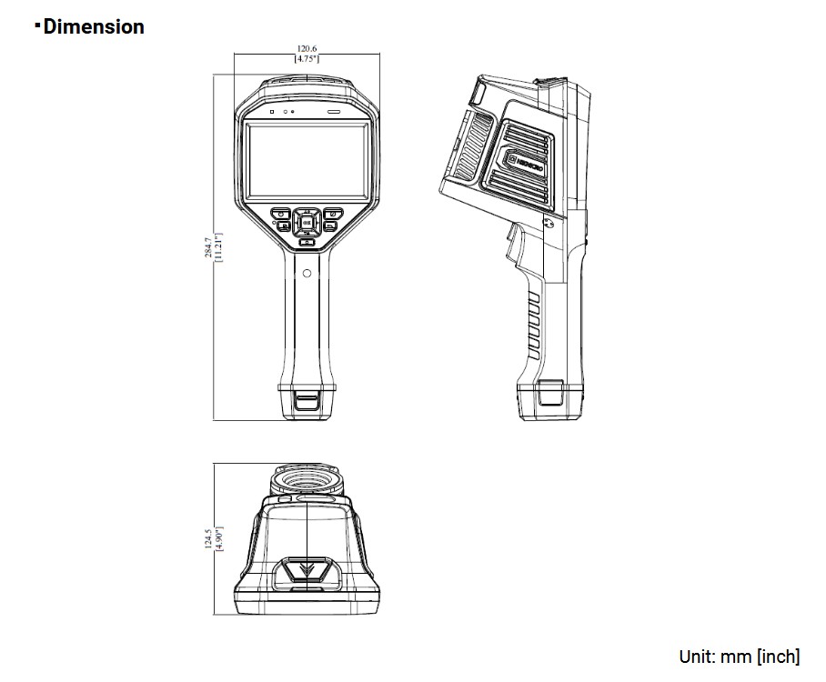 Ruční termografická kamera, rozsah měření teploty -20 až +650°C, rozlišení senzoru 480 x 360 Pixel (v režimu Super IR 960 x 720 Pixel), optika 18.7° x 14°, geometrické rozlišení (IFOV) 0.68mrad, displej 4.3", rozlišení displeje 800 x 480 Pixel, digitální zoom 8x, dotykový displej, přesnost měření 2°C, minimální zaostřovací vzdálenost 0,3m, teplotní citlivost 35mK, rozhraní Wi-Fi/Bluetooth/USB-C, GPS, Kompas, HDMI výstup, LED světlo, laserové zaměření (vnitřní prostory max. 50m, venkovní prostory max. 10m)výdrž baterie 4 hodiny, nabíjení přes USB-C cca 4 hodiny, IP54, rozměry: 285 x 121 x 125 mm, hmotnost: 1058g.