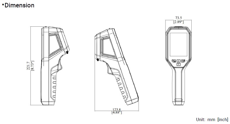 Ruční termografická kamera se zvýšenou teplotní odolností pro hasičské práce., rozsah měření teploty -20 až +550°C, rozlišení senzoru 256 x 192 Pixel, optika 37.2° × 50.0°, geometrické rozlišení (IFOV) 3,3mrad, displej 3.2", rozlišení displeje 240 x 320 Pixel, přesnost měření 2°C, minimální zaostřovací vzdálenost 0,3m, teplotní citlivost 40mK, rozhraní USB-C, výdrž baterie 6 hodin, nabíjení přes USB-C cca 3 hodiny, IP65, rozměry: 221.7 × 73.5 × 123.8 mm, hmotnost: 380g.