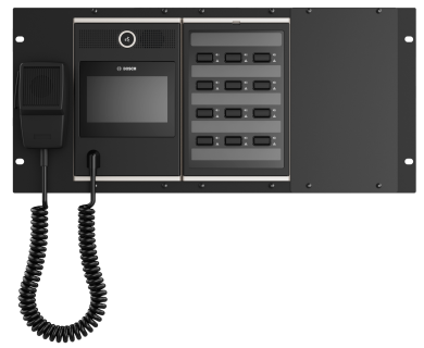 Panel PSP-D00099 19'' 5HE má výšku 5U. Můžete jej použít k instalaci stanice hlasatele PRAESENSA a rozšíření stanice hlasatele do 19" přístrojové skříně. Robustní kovový panel k montáži do skříně je vybaven pozicemi pro tyto prvky: • Nástěnná stanice hlasatele PRA-CSLW s displejem LCD • Až dvě rozšíření stanice hlasatele PRA-CSE • Držák mikrofonu. Druhý panel lze použít k instalaci dalších rozšíření stanice hlasatele. Nevyužité pozice lze zakrýt záslepkami.