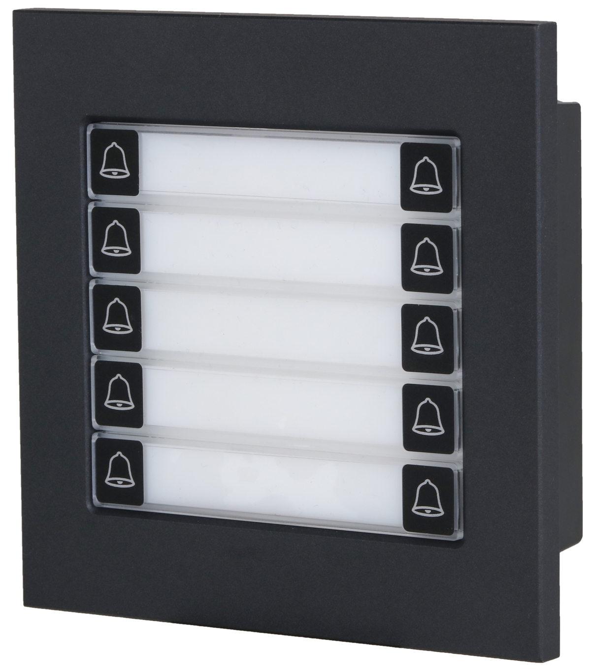 Rozšiřující černý dveřní modul s 10 tlačítky. Slouží pro rozšíření hlavní IP dveřní stanice VTO.
