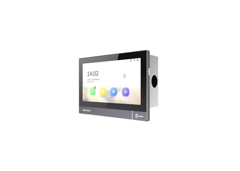IP videotelefon s dotykovým ovládáním a zápustnou montáží, čelní panel z leštěného hliníku; 1x fyzické tlačítko na otevírání dveří/brány, 7" obrazovka, rozlišení 1024 x 600 dpi, rozhraní LAN a WiFi, ovládání výtahu, podpora standardního SIP protokolu, slot na SD kartu (max. 128GB), umožňuje sdílení video hovoru s mobilní aplikací HIK-CONNECT pro smartphone/tablet, lze zobrazovat až 16 CCTV kamer z kamerových systémů Hikvision (RTSP stream), česká lokalizace, 4x relé pro ovládání zámku, Výstup 12VDC/0,5A pro napájení např. PIR detektor, detektor kouře, magnetický kontakt atd, alarmový výstup např. pro externí zvonek,8x alarmový vstup(například pro tlačítko bytového vyzvánění), napájení 12VDC /1,5A (zdroj není součástí dodávky) nebo PoE (IEEE802.3af); systém 2. generace, rozměry: 180 x 128 x 22mm, hmotnost 0,4kg, montážní box na zapuštění do zdi DS-KABH8380-G je součástí balení(rozměry boxu jsou 171 × 102 × 55 mm).