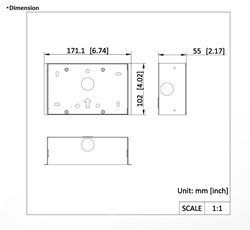 Montážní zápustný box pro IP videotelefelony Hikvision 2. gen. DS-KH8380/81, rozměry 71×102 × 55mm.