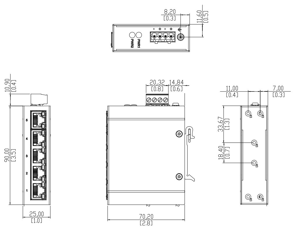 Průmyslový ethernetový přepínač s 5 porty 10/100Mb a fixní konfigurací. Technologie Plug&Play, kompaktní rozměry, široký rozsah pracovních teplot -40°C až 75°C, možnost redudantního napájení 12 až 58 V DC, 1KV odolnost proti přepětí na portech RJ45, montáž na DIN.