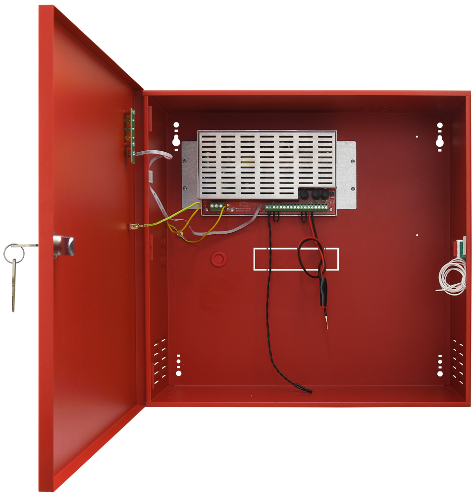 Zálohované napájecí zdroje jsou určeny pro spojité napájení systémů požární signalizace, zařízení pro usměrňování pohybu kouře a tepla a systémů požární ochrany, vyžadujících stabilizované napájecí napětí 24Vss (± 15%). Napájecí zdroje jsou vybaveny dvěma nezávisle jištěnými výstupy AUX1 a AUX2, které poskytují napětí 27,6 Vss a proud do zátěže a pro nabíjení akumulátorů v závislosti na verzi zdroje. V případě výpadku síťového napájení se zdroj přepne na napájení z akumulátoru a zajistí spojité, nepřerušované napájení připojeného zařízení. Napájecí jednotka je umístěna v kovovém krytu červené barvy RAL 3001, s prostorem pro dva bezúdržbové olověné akumulátory. Napájecí zdroj pracuje s bezúdržbovými bateriemi vyráběnými AGM technologií nebo gelovou technologií. Hodnota ImaxA udává maximální proudový odběr pro trvalý provoz, ImaxB pro krátkodobý provoz (max. 5min).