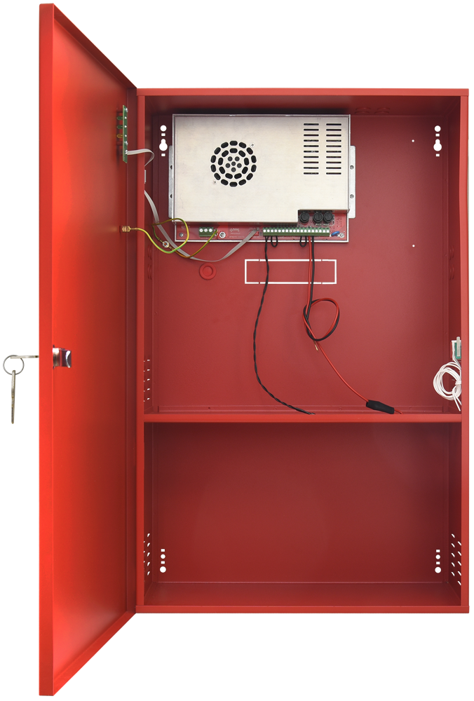 Zálohované napájecí zdroje jsou určeny pro spojité napájení systémů požární signalizace, zařízení pro usměrňování pohybu kouře a tepla a systémů požární ochrany, vyžadujících stabilizované napájecí napětí 24Vss (± 15%). Napájecí zdroje jsou vybaveny dvěma nezávisle jištěnými výstupy AUX1 a AUX2, které poskytují napětí 27,6 Vss a proud do zátěže a pro nabíjení akumulátorů v závislosti na verzi zdroje. V případě výpadku síťového napájení se zdroj přepne na napájení z akumulátoru a zajistí spojité, nepřerušované napájení připojeného zařízení. Napájecí jednotka je umístěna v kovovém krytu červené barvy RAL 3001, s prostorem pro dva bezúdržbové olověné akumulátory. Napájecí zdroj pracuje s bezúdržbovými bateriemi vyráběnými AGM technologií nebo gelovou technologií. Hodnota ImaxA udává maximální proudový odběr pro trvalý provoz, ImaxB pro krátkodobý provoz (max. 5min).