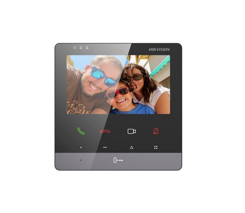 HD videotelefon s tlačítkovým dotykovým ovládáním, 4,3" obrazovka: rozlišení 480 x 272 dpi, 2-vodičový systém, slot na SD kartu (max. 32GB verze 2), interní paměť 128MB, Flash 32MB, česká lokalizace, 1x alarmový vstup(pro bytové tlačítko), napájení pomocí distributoru DS-KAD7060EY/DS-KAD7061EY 48Vdc ( není součástí dodávky), vnitřní spojení až se 3 vnitřními dalšími monitory(funkce přípojka), DIP switch 5x otočný + 4x binární, pomocí DIP přepínačů lze nastavit, zda se při volání rozsvítí pouze jedna vnitřní stanice (building režim) nebo více vnitřních stanic (villa režim). V režimu villa musí být rozšiřující vnitřní stanice samostatně napájeny 12VDC, prostřednictvím dalšího páru DIP přepínačů lze také nastavit automatické otevírání 1 nebo 2 dveří (režim studio), spotřeba 4W, rozměry: 120 x 120 x 23mm, hmotnost 0,4kg, barva černá. Pozor - tento model nepodporuje volání do mobilní aplikace HIK-Connect !!! Důležité - pro zaznamenání fotky volajícího v monitoru a v mobilní aplikaci Hik-Connect je nutné dokoupit micro SD paměťovou kartu o velikosti max. 32GB, monitor neumí zobrazit streamy z externích kamer a nelze využívat ani interkomové volání !!!
