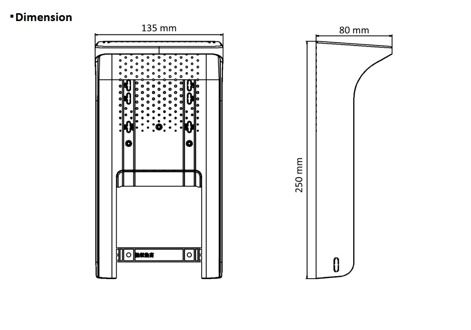 Stříška proti dešti pro Face ID terminály DS-K1T673, provozní teplota -30° - 60°C, venkovní provedení, materiál plast, rozměry: 135 × 80 × 250mm, hmotnost 162g,