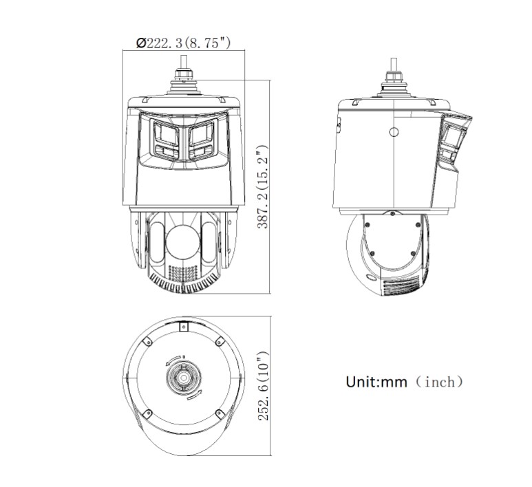 4 Mpx, venkovní PTZ dome kamera, ColorVu, světelná citlivost bullet kamery 0,0005 Lux, citlivost PTZ kamery 0,005 Lux, IR přísvit 200 metrů, LED přísvit 30 metrů,WDR 120dB, ICR, 25x optický zoom (5,9-188,8 mm),16x digitální zoom, Panorama kamera ColorVu objektiv 4mm(180°), 300 presetů, IP66, SMART funkce (analýza chování, překročení linie, detekce průchodů, detekce narušení oblasti, detekce obličeje, detekce vozidla ), Smart Tracking - sledování detekovaného objektu, alarmový vstup/výstup 2/1, Face Capture a Auto tracking u PTZ kamery, audio vstup/výstup 1/1, integrovaný reproduktor, integrovaný LED blikač, zvukový alarm, slot na micro SD kartu(max. 256GB), napájení 24VAC/Hi-PoE, resetovací tlačítko, provozní teplota -30°C - 65°C, rozměry: průměr 222,3 mm × 387.2 mm, hmotnost 6kg.