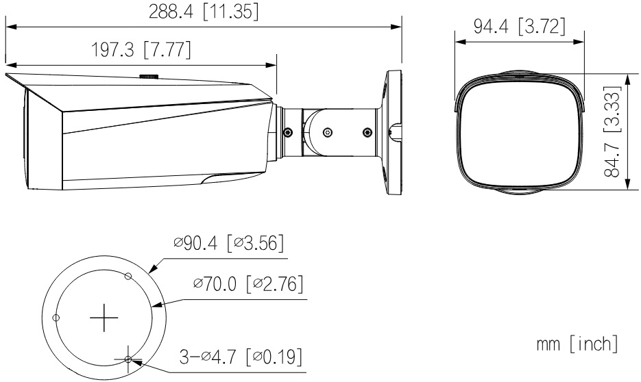 černá Bullet IP kamera řady WizSense 3 Series, Smart Dual přísvit, IVS ochrana perimetru, SMD detekce člověk/vozidlo, inteligentní vyhledávání. AcuPick auto hledání pohybujících se objektů. AI SSA dynamické přizpůsobení obrazu, integrovaný duální mikrofon a repro (obousměrné audio komunikace), alarm I/O, slot pro micro SD. Napájení PoE nebo 12 VDC.